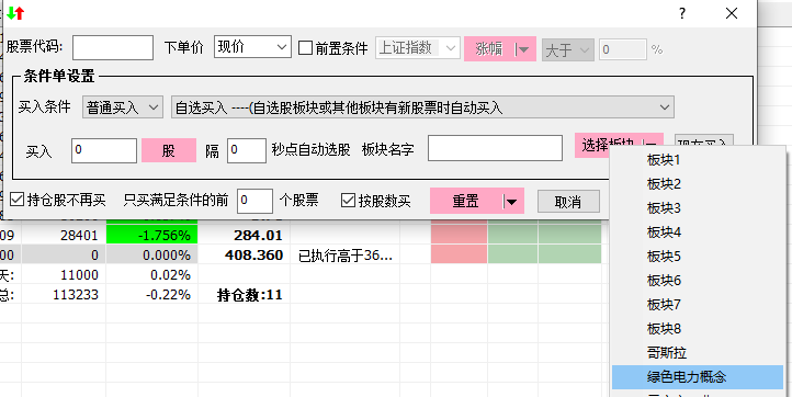 2.假如你这个条件单限制了时间段,那么只有在 指定的时间才买入。并且是买入这个自选板块里的所有股票,而不只是新加的股票。这种条件单我们用来定时买入,因此这个板块里的股票都会买入的。