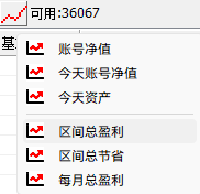 除了助手条件列表显示累计盈利和累计节省,你可以 右键点击资金曲线,从右键菜单查看 区间总盈利,区间总节省,每月总盈利等历史图形。也可以点击区间按钮右侧的下拉箭头查看